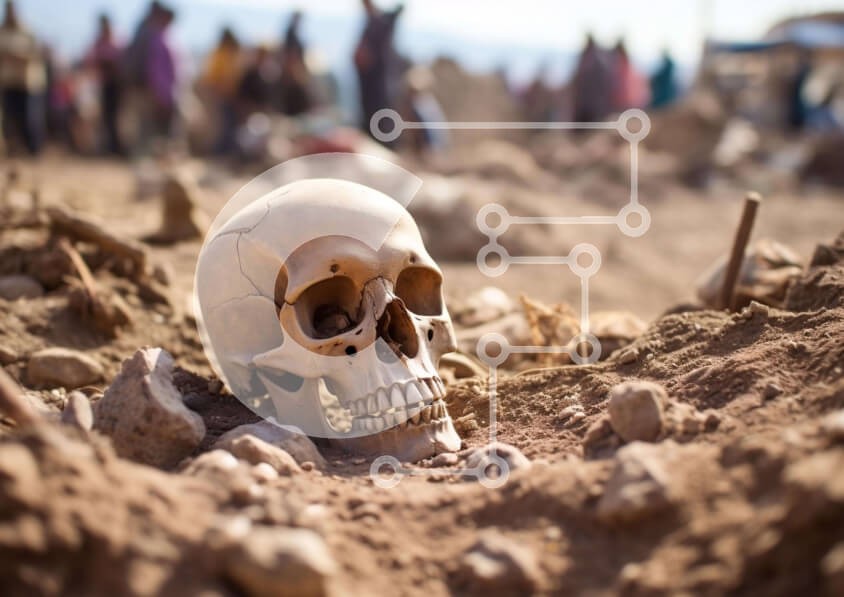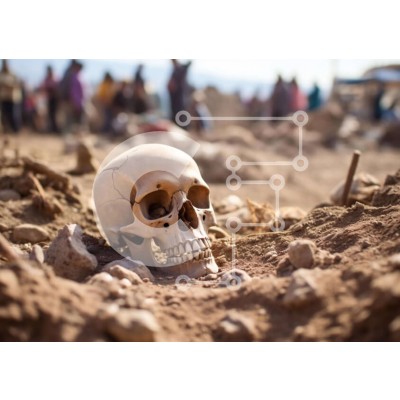 Υπάρχει δυνατότητα προσωποποίησης με δική σας φωτογραφία και προσαρμογής διαστάσεων κατόπιν παραγγελίας. Το συγεκεριμενο puzzle παρουσιαζει Η εικόνα δείχνει ένα κρανίο πεσμένο στο έδαφος μπροστά σε πολλούς ανθρώπους. Πιθανολογείται ότι το κρανίο είναι μέρος αρχαιολογικής ανασκαφής, η οποία μπορεί να έγινε από κάποιον από την τοπική κοινωνία. Φαίνονται άνθρωποι να περπατούν στην περιοχή και μερικοί από αυτούς φαίνε