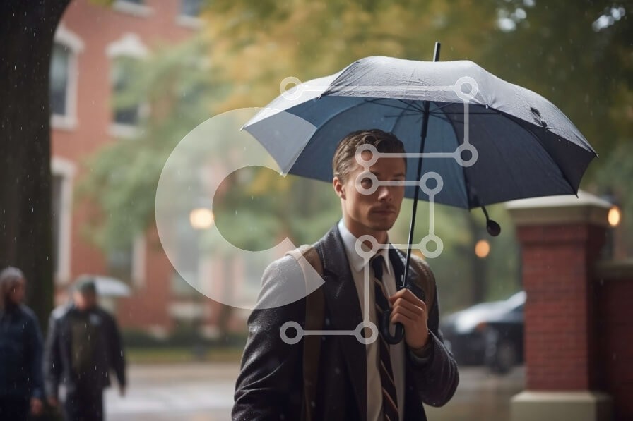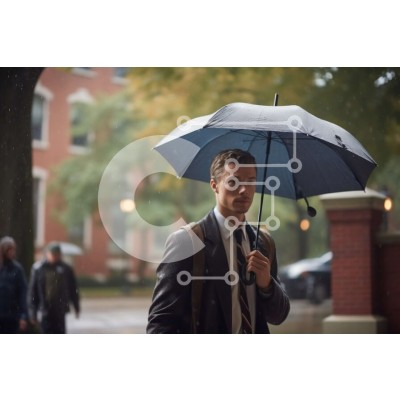 Υπάρχει δυνατότητα προσωποποίησης με δική σας φωτογραφία και προσαρμογής διαστάσεων κατόπιν παραγγελίας. Το συγεκεριμενο puzzle παρουσιαζει Αυτή η εικόνα παρουσιάζει έναν άνδρα με κοστούμι και γραβάτα που κρατά μια ομπρέλα μια βροχερή μέρα. Περπατά κατά μήκος ενός δρόμου της πόλης, με τις σταγόνες της βροχής ορατές στο βάθος. Ένα μοναδικό puzzle που συνδυάζει ποιότητα, αισθητική και εμπειρία. Υλικό: Κατασκευασμέ