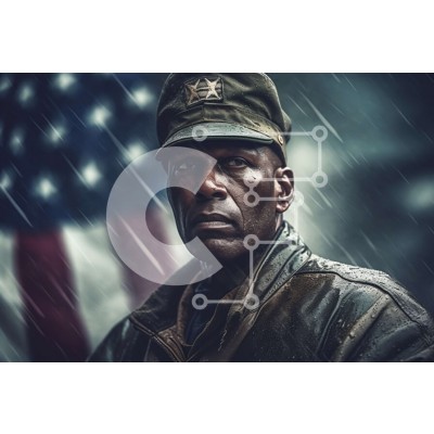 Υπάρχει δυνατότητα προσωποποίησης με δική σας φωτογραφία και προσαρμογής διαστάσεων κατόπιν παραγγελίας. Το συγεκεριμενο puzzle παρουσιαζει Αυτή η εικόνα δείχνει έναν άνδρα να στέκεται στη βροχή φορώντας στρατιωτική ενδυμασία. Στο βάθος, μια αμερικανική σημαία κυματίζει περήφανα στον άνεμο. Η έκφραση και η στάση του άνδρα μεταδίδουν μια αίσθηση υπερηφάνειας και αποφασιστικότητας. Αυτή η δυνατή εικόνα είναι ιδανική