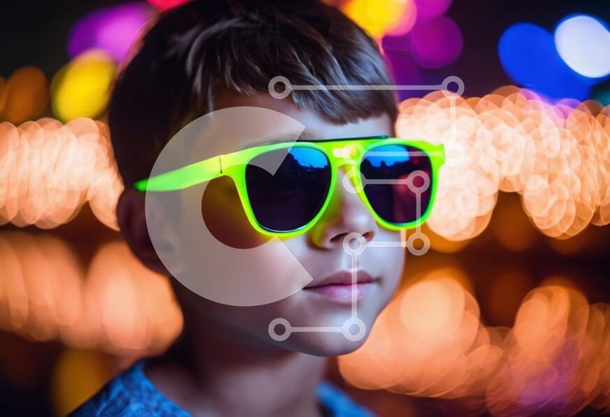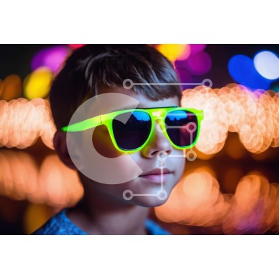 Υπάρχει δυνατότητα προσωποποίησης με δική σας φωτογραφία και προσαρμογής διαστάσεων κατόπιν παραγγελίας. Το συγεκεριμενο puzzle παρουσιαζει Αυτή η εικόνα παρουσιάζει ένα νεαρό αγόρι που φορά γυαλιά ηλίου σε χρώμα νέον ενώ στέκεται μπροστά σε ένα φωτισμένο φόντο. Τα ζωηρά φώτα στο φόντο δημιουργούν ένα σαγηνευτικό αποτέλεσμα και φαίνεται σαν το αγόρι να κοιτάζει τον νυχτερινό ουρανό. Αυτή η εικόνα αποτυπώνει μια αί