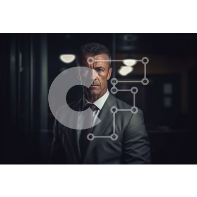 Υπάρχει δυνατότητα προσωποποίησης με δική σας φωτογραφία και προσαρμογής διαστάσεων κατόπιν παραγγελίας. Το συγεκεριμενο puzzle παρουσιαζει Αυτή η εικόνα παρουσιάζει έναν σοβαρό επιχειρηματία με γκρι κοστούμι και λευκό πουκάμισο με μαύρη γραβάτα. Στέκεται σε ένα δωμάτιο με χαμηλό φωτισμό, με μια ενιαία λάμπα που κρέμεται από το ταβάνι να ρίχνει φως στο πρόσωπό του. Το υπόλοιπο δωμάτιο είναι τυλιγμένο στο σκοτάδι,