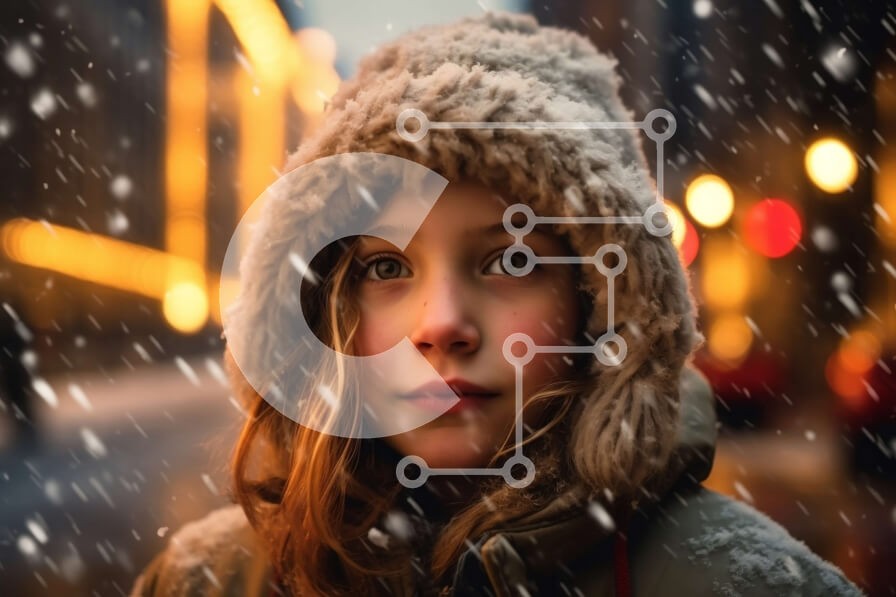 Υπάρχει δυνατότητα προσωποποίησης με δική σας φωτογραφία και προσαρμογής διαστάσεων κατόπιν παραγγελίας. Το συγεκεριμενο puzzle παρουσιαζει Αυτή η εικόνα παρουσιάζει μια νεαρή κοπέλα που φορά μια κουκούλα με γούνα και στέκεται σε έναν χιονισμένο δρόμο τη νύχτα. Το χιόνι πέφτει γύρω της, και κοιτάζει ψηλά στον ουρανό. Η σκηνή είναι ζεστή και γαλήνια, με το κορίτσι να είναι το επίκεντρο της εικόνας. Ένα μοναδικό pu