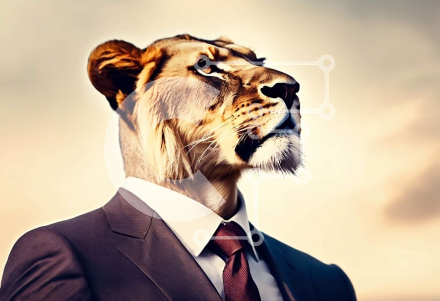 Υπάρχει δυνατότητα προσωποποίησης με δική σας φωτογραφία και προσαρμογής διαστάσεων κατόπιν παραγγελίας. Το συγεκεριμενο puzzle παρουσιαζει Αυτή η εικόνα δείχνει έναν άνδρα ντυμένο με επαγγελματικά ρούχα με ένα καπέλο λιονταριού στο κεφάλι του. Ο άνδρας φαίνεται να ποζάρει για επαγγελματικές φωτογραφίες ή να ασχολείται με κάποια επιχειρηματική δραστηριότητα. Το καπέλο λιονταριού προσθέτει μια παιχνιδιάρικη και δημ
