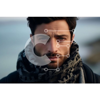 Υπάρχει δυνατότητα προσωποποίησης με δική σας φωτογραφία και προσαρμογής διαστάσεων κατόπιν παραγγελίας. Το συγεκεριμενο puzzle παρουσιαζει Αυτή η εικόνα απεικονίζει έναν άνδρα με σοβαρή εμφάνιση που φορά μαύρο σακάκι, κασκόλ και μαντήλι. Έχει κοντά, σκούρα μαλλιά και περιποιημένη γενειάδα. Ο άντρας κοιτάζει κατευθείαν την κάμερα με μια σοβαρή έκφραση στο πρόσωπό του. Πίσω του, υπάρχει ένα υδάτινο σώμα με τα κύματ