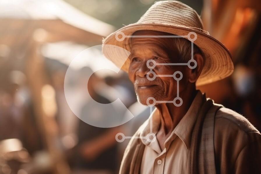 Υπάρχει δυνατότητα προσωποποίησης με δική σας φωτογραφία και προσαρμογής διαστάσεων κατόπιν παραγγελίας. Το συγεκεριμενο puzzle παρουσιαζει Αυτή η εικόνα απεικονίζει έναν ηλικιωμένο άνδρα να στέκεται σε μια πολυσύχναστη αγορά που περιβάλλεται από διάφορους πάγκους που πωλούν αγαθά. Ο άντρας φοράει ένα ψάθινο καπέλο και έχει μια αυστηρή έκφραση στο πρόσωπό του, κοιτάζοντας μακριά. Ο ήλιος λάμπει, ρίχνει μεγάλες σκι