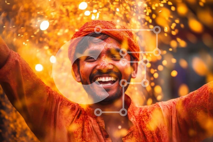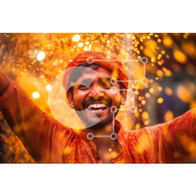 Υπάρχει δυνατότητα προσωποποίησης με δική σας φωτογραφία και προσαρμογής διαστάσεων κατόπιν παραγγελίας. Το συγεκεριμενο puzzle παρουσιαζει Αυτή είναι μια εικόνα ενός άνδρα που φορά ένα πορτοκαλί τουρμπάνι και ένα κίτρινο πουκάμισο που στέκεται μπροστά σε μια ομάδα ανθρώπων. Χαμογελάει και πετάει χρωματιστή πούδρα στον αέρα, δημιουργώντας μια ζωντανή και ζωντανή ατμόσφαιρα. Τα χρώματα της πούδρας προσθέτουν στον ε