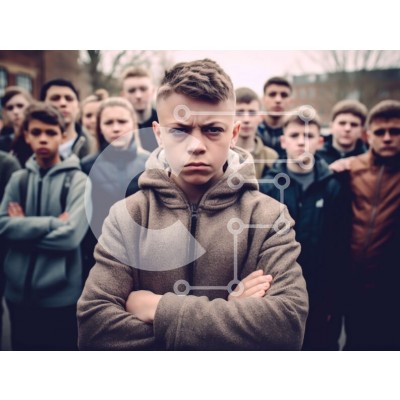 Υπάρχει δυνατότητα προσωποποίησης με δική σας φωτογραφία και προσαρμογής διαστάσεων κατόπιν παραγγελίας. Το συγεκεριμενο puzzle παρουσιαζει Αυτή η εικόνα παρουσιάζει μια ομάδα νεαρών αγοριών που στέκονται σε μια σειρά μπροστά από έναν τοίχο από τούβλα. Φορούν όλοι κουκούλα και έχουν τα χέρια σταυρωμένα μπροστά τους. Ένα από τα αγόρια κοιτάζει μακριά από την κάμερα, ενώ τα άλλα την κοιτάζουν. Αυτή η εικόνα αποτυπών
