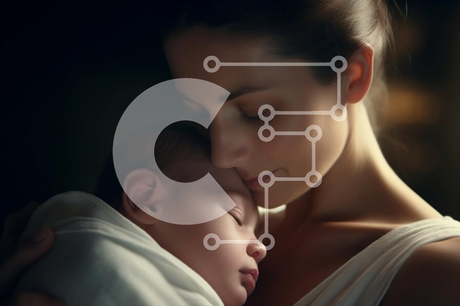 Υπάρχει δυνατότητα προσωποποίησης με δική σας φωτογραφία και προσαρμογής διαστάσεων κατόπιν παραγγελίας. Το συγεκεριμενο puzzle παρουσιαζει Η εικόνα απεικονίζει μια μητέρα να αγκαλιάζει το νεογέννητο μωρό της, τυλιγμένη σε ένα λευκό πανί. Το πρόσωπο της μητέρας φαίνεται κάτω από την κουβέρτα, υποδηλώνοντας τη στοργή της προς το μωρό. Η λεπτομερής εστίαση είναι στα μάτια, τα μαλλιά και τα χέρια της γυναίκας. Ένα μ