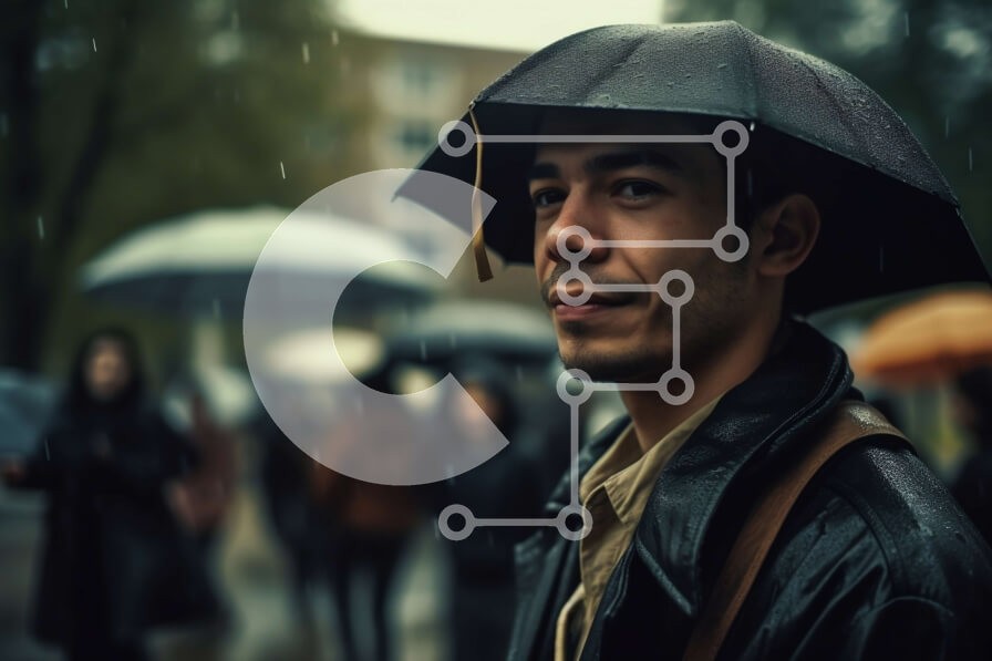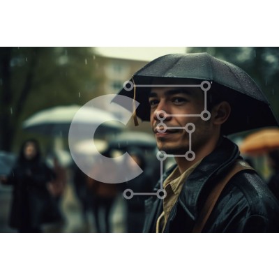 Υπάρχει δυνατότητα προσωποποίησης με δική σας φωτογραφία και προσαρμογής διαστάσεων κατόπιν παραγγελίας. Το συγεκεριμενο puzzle παρουσιαζει Αυτή η στοκ φωτογραφία παρουσιάζει έναν άνδρα που φορά ένα μαύρο δερμάτινο μπουφάν και κρατά μια ομπρέλα σε έναν βροχερό δρόμο. Ο άνδρας περικυκλώνεται από άλλους πεζούς που κουβαλούν επίσης ομπρέλες. Η εικόνα μεταφέρει την ιδέα του κακού καιρού και της φασαρίας της αστικής ζω