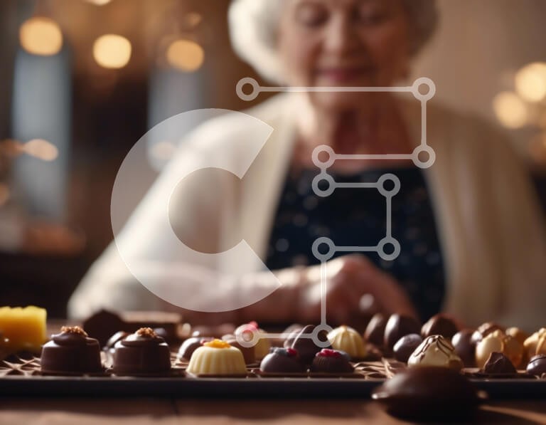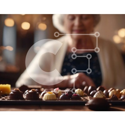 Υπάρχει δυνατότητα προσωποποίησης με δική σας φωτογραφία και προσαρμογής διαστάσεων κατόπιν παραγγελίας. Το συγεκεριμενο puzzle παρουσιαζει Αυτή η εικόνα παρουσιάζει μια ηλικιωμένη γυναίκα να κάθεται μπροστά σε ένα δίσκο γεμάτο σοκολάτες και διάφορα είδη γλυκών. Κοιτάζει το δίσκο με μια έκφραση περιεχομένου, περιτριγυρισμένη από μια απολαυστική ποικιλία γλυκών. Ένα μοναδικό puzzle που συνδυάζει ποιότητα, αισθητικ