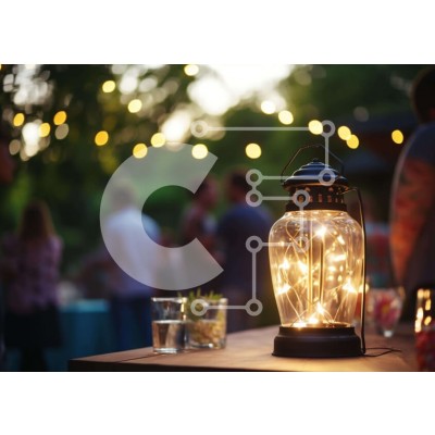 Υπάρχει δυνατότητα προσωποποίησης με δική σας φωτογραφία και προσαρμογής διαστάσεων κατόπιν παραγγελίας. Το συγεκεριμενο puzzle παρουσιαζει Η εικόνα παρουσιάζει ένα φανάρι με φώτα που κάθεται πάνω από ένα τραπέζι εξωτερικού χώρου. Υπάρχουν πολλά άτομα που στέκονται γύρω από το τραπέζι, γεγονός που μπορεί να υποδηλώνει ότι παρακολουθούν μια εκδήλωση ή πάρτι. Επιπλέον, υπάρχουν μερικά μπουκάλια και ποτήρια σε κοντιν