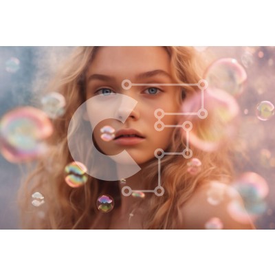 Υπάρχει δυνατότητα προσωποποίησης με δική σας φωτογραφία και προσαρμογής διαστάσεων κατόπιν παραγγελίας. Το συγεκεριμενο puzzle παρουσιαζει Αυτή η εικόνα παρουσιάζει μια νεαρή γυναίκα με μακριά ξανθά μαλλιά και μπλε μάτια. Στέκεται μπροστά σε ένα μεγάλο σύννεφο φούσκα φορώντας ένα λευκό πουκάμισο και μπλε τζιν. Οι φυσαλίδες επιπλέουν γύρω της και φαίνεται χαλαρή κοιτώντας την κάμερα. Το απαλό, μουντό μπλε φόντο δη