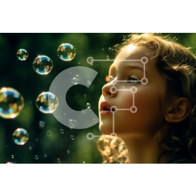 Υπάρχει δυνατότητα προσωποποίησης με δική σας φωτογραφία και προσαρμογής διαστάσεων κατόπιν παραγγελίας. Το συγεκεριμενο puzzle παρουσιαζει Αυτή η εικόνα απαθανατίζει ένα νεαρό κορίτσι που φορά ένα ροζ πουκάμισο και τζιν, στέκεται σε ένα πράσινο χωράφι και κοιτάζει ψηλά τις φυσαλίδες που επιπλέουν στον αέρα. Τα σγουρά καστανά μαλλιά της προσθέτουν στην αξιολάτρευτη εμφάνισή της. Το φόντο περιλαμβάνει δέντρα και ηλ