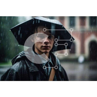 Υπάρχει δυνατότητα προσωποποίησης με δική σας φωτογραφία και προσαρμογής διαστάσεων κατόπιν παραγγελίας. Το συγεκεριμενο puzzle παρουσιαζει Αυτή είναι μια ασπρόμαυρη εικόνα ενός νεαρού άνδρα που φορά ένα μαύρο δερμάτινο μπουφάν και κρατά μια ομπρέλα στη βροχή. Τα μαλλιά του είναι κοντά και ακατάστατα και κοιτάζει κάτω στο έδαφος. Ένα μοναδικό puzzle που συνδυάζει ποιότητα, αισθητική και εμπειρία. Υλικό: Κατασκευ