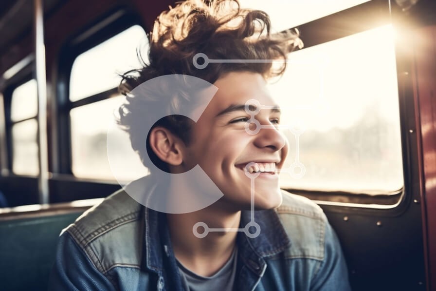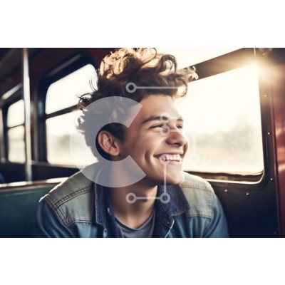 Υπάρχει δυνατότητα προσωποποίησης με δική σας φωτογραφία και προσαρμογής διαστάσεων κατόπιν παραγγελίας. Το συγεκεριμενο puzzle παρουσιαζει Αυτή η φωτογραφία απαθανατίζει έναν νεαρό άνδρα με σγουρά μαλλιά να κάθεται σε ένα τρένο και να χαμογελά με ένα τζιν μπουφάν. Κοιτάζει έξω από το παράθυρο, ίσως απολαμβάνει τη θέα έξω. Η εικόνα έχει ζεστό τόνο, καθιστώντας την ιδανική για κάθε ταξίδι ή έργο με χαρούμενο θέμα.