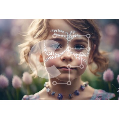 Υπάρχει δυνατότητα προσωποποίησης με δική σας φωτογραφία και προσαρμογής διαστάσεων κατόπιν παραγγελίας. Το συγεκεριμενο puzzle παρουσιαζει Η εικόνα απεικονίζει ένα νεαρό κορίτσι με λευκή μπογιά προσώπου και λουλούδια στο πρόσωπό της. Στέκεται στη μέση ενός ανοιχτού πεδίου, κάτι που μπορεί να υποδηλώνει ότι απολαμβάνει τη φύση ή συμμετέχει σε κάποιο είδος δημιουργικής δραστηριότητας. Υπάρχουν επίσης πολλά κολιέ γύ