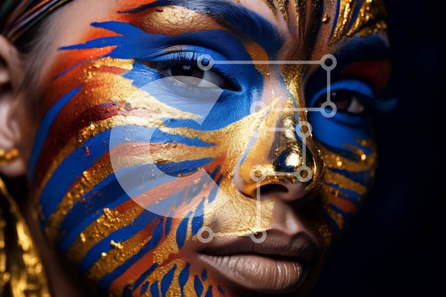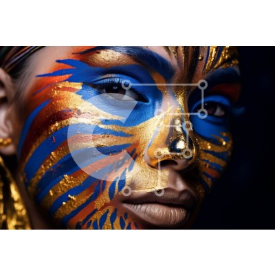 Υπάρχει δυνατότητα προσωποποίησης με δική σας φωτογραφία και προσαρμογής διαστάσεων κατόπιν παραγγελίας. Το συγεκεριμενο puzzle παρουσιαζει Αυτή η εικόνα παρουσιάζει μια όμορφη γυναίκα με περίπλοκη και πολύχρωμη ζωγραφική προσώπου. Το σχέδιο είναι λεπτομερές και ζωντανό, με έντονα χρώματα που ξεχωρίζουν στο δέρμα της. Είναι μια ιδανική εικόνα για καμπάνιες ομορφιάς, φεστιβάλ ή οποιοδήποτε έργο που απαιτεί ένα στοι