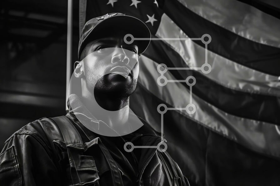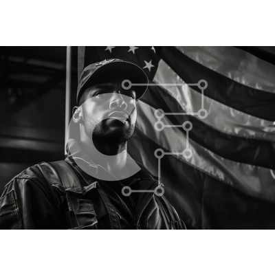 Υπάρχει δυνατότητα προσωποποίησης με δική σας φωτογραφία και προσαρμογής διαστάσεων κατόπιν παραγγελίας. Το συγεκεριμενο puzzle παρουσιαζει Αυτή είναι μια ασπρόμαυρη φωτογραφία ενός άνδρα με στρατιωτική στολή που στέκεται δίπλα σε μια αμερικανική σημαία. Ο άντρας φοράει σκουφάκι και έχει μια σοβαρή έκφραση στο πρόσωπό του. Η σημαία κυματίζει στον άνεμο και υπάρχει ένα κτίριο στο βάθος. Ένα μοναδικό puzzle που συν