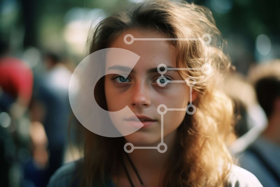 Υπάρχει δυνατότητα προσωποποίησης με δική σας φωτογραφία και προσαρμογής διαστάσεων κατόπιν παραγγελίας. Το συγεκεριμενο puzzle παρουσιαζει Αυτή η εικόνα απαθανατίζει μια νεαρή γυναίκα με μακριά, σγουρά μαλλιά και εντυπωσιακά μπλε μάτια. Κοιτάζει κατευθείαν την κάμερα με σοβαρή έκφραση και φοράει ένα γκρι πουκάμισο. Στο βάθος διακρίνεται πλήθος κόσμου να περπατάει. Αυτή η φωτογραφία είναι ιδανική για έργα που χρει