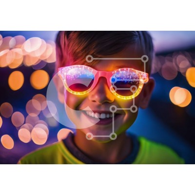 Υπάρχει δυνατότητα προσωποποίησης με δική σας φωτογραφία και προσαρμογής διαστάσεων κατόπιν παραγγελίας. Το συγεκεριμενο puzzle παρουσιαζει Αυτή η εικόνα δείχνει ένα νεαρό αγόρι να φοράει πολύχρωμα γυαλιά ηλίου και να χαμογελά στην κάμερα. Είναι ντυμένος και τα ζωηρά γυαλιά υποδηλώνουν ότι είναι έτοιμος για μια γιορτή ή εκδήλωση. Ο φωτισμός στο φόντο ενισχύει τη συνολική ελκυστικότητα της εικόνας, δημιουργώντας μι