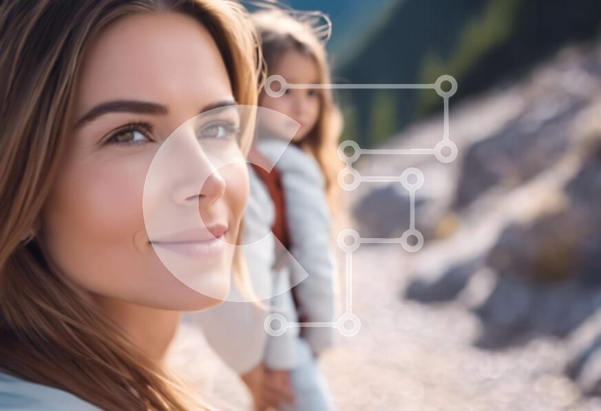 Υπάρχει δυνατότητα προσωποποίησης με δική σας φωτογραφία και προσαρμογής διαστάσεων κατόπιν παραγγελίας. Το συγεκεριμενο puzzle παρουσιαζει Αυτή η εικόνα απεικονίζει μια γυναίκα και την κόρη της να στέκονται ο ένας δίπλα στον άλλο σε μια βουνοπλαγιά. Το πρόσωπο της γυναίκας φαίνεται σε πρώτο πλάνο, υποδεικνύοντας το άμεσο βλέμμα της προς την κάμερα. Η σκηνή υποδηλώνει μια ενδιαφέρουσα δραστηριότητα, πιθανώς πεζοπο