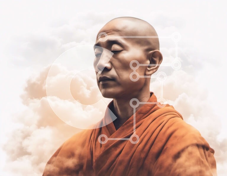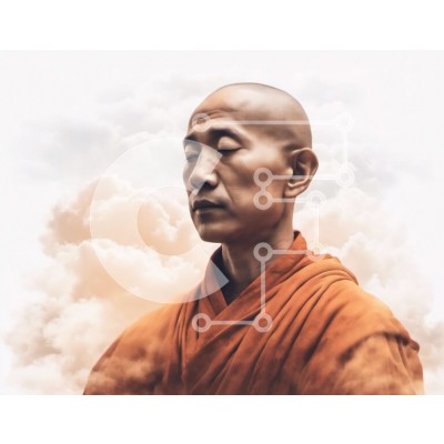 Υπάρχει δυνατότητα προσωποποίησης με δική σας φωτογραφία και προσαρμογής διαστάσεων κατόπιν παραγγελίας. Το συγεκεριμενο puzzle παρουσιαζει Αυτή η εικόνα είναι ένα πορτρέτο ενός μοναχού με πορτοκαλί ρούχα που στέκεται στα σύννεφα. Ο μοναχός έχει τα μάτια του κλειστά και το κεφάλι του γερμένο στο πλάι, υποδηλώνοντας μια κατάσταση βαθιάς περισυλλογής. Η εικόνα προκαλεί μια αίσθηση γαλήνης και πνευματικότητας. Μπορεί