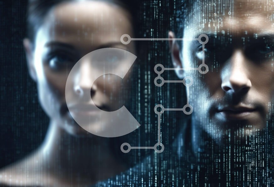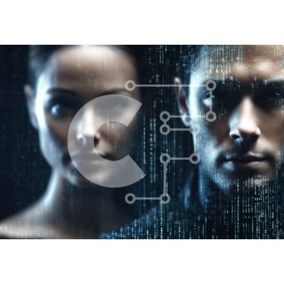 Υπάρχει δυνατότητα προσωποποίησης με δική σας φωτογραφία και προσαρμογής διαστάσεων κατόπιν παραγγελίας. Το συγεκεριμενο puzzle παρουσιαζει Αυτή η εικόνα παρουσιάζει έναν άνδρα και μια γυναίκα να στέκονται ο ένας δίπλα στον άλλο, με φόντο τον δυαδικό κώδικα. Το κεφάλι του άντρα γέρνει προς την κάμερα, υποδηλώνοντας την εστίασή τους σε κάτι που βρίσκεται μακριά. Οι γραμμές κειμένου στον τοίχο πίσω τους υποδεικνύουν