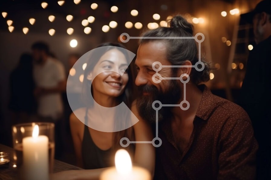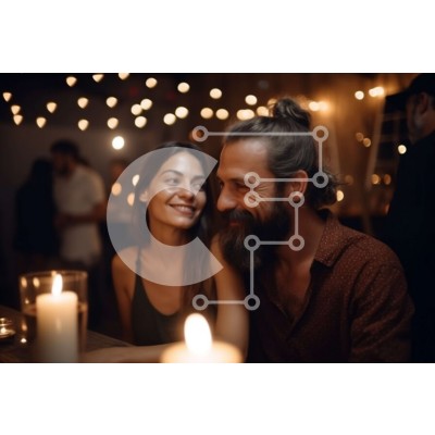Υπάρχει δυνατότητα προσωποποίησης με δική σας φωτογραφία και προσαρμογής διαστάσεων κατόπιν παραγγελίας. Το συγεκεριμενο puzzle παρουσιαζει Αυτή η εικόνα παρουσιάζει ένα νεαρό ζευγάρι που κάθεται σε ένα τραπέζι υπό το φως των κεριών σε ένα φιλόξενο εστιατόριο. Το ζευγάρι χαμογελάει και κοιτάζει με αγάπη ο ένας τον άλλον στα μάτια, απολαμβάνοντας ένα ρομαντικό δείπνο μαζί. Ένα μοναδικό puzzle που συνδυάζει ποιότητ