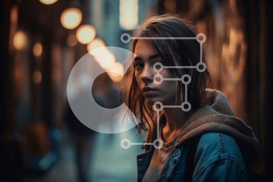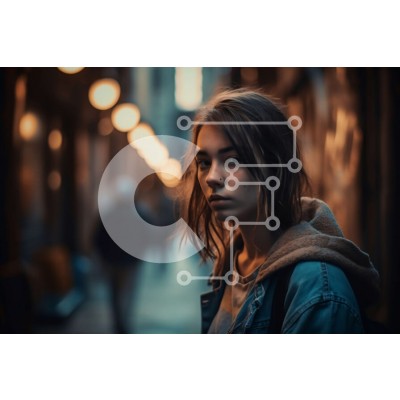 Υπάρχει δυνατότητα προσωποποίησης με δική σας φωτογραφία και προσαρμογής διαστάσεων κατόπιν παραγγελίας. Το συγεκεριμενο puzzle παρουσιαζει Αυτή η εικόνα δείχνει μια νεαρή γυναίκα να στέκεται σε ένα δρομάκι φορώντας ένα τζιν μπουφάν και κοιτάζει μακριά. Το δρομάκι είναι αμυδρά φωτισμένο με κίτρινα φώτα του δρόμου και στο βάθος διακρίνονται πολλά κτίρια. Το γυναικείο ντύσιμο και το αστικό σκηνικό δημιουργούν μια κο