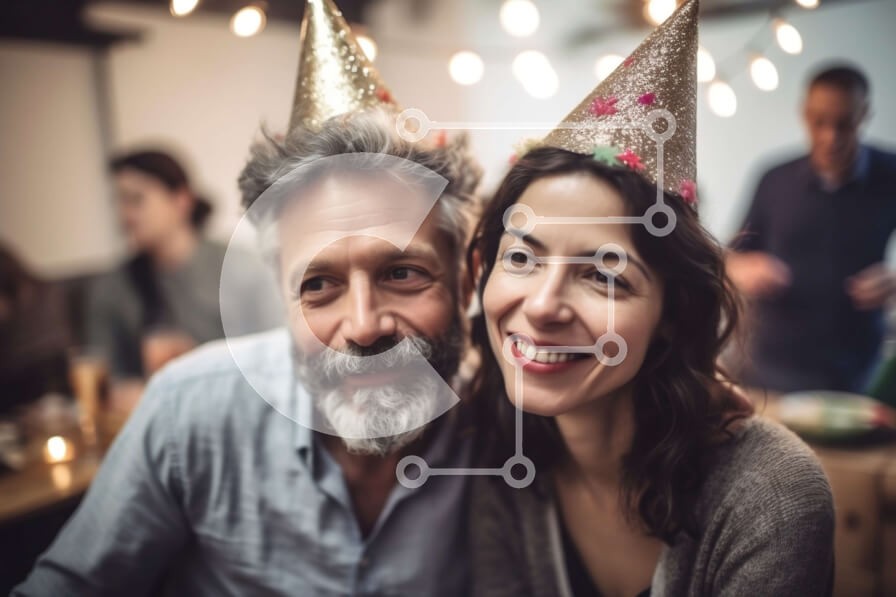 Υπάρχει δυνατότητα προσωποποίησης με δική σας φωτογραφία και προσαρμογής διαστάσεων κατόπιν παραγγελίας. Το συγεκεριμενο puzzle παρουσιαζει Αυτή η εικόνα δείχνει μια ομάδα ανθρώπων που κάθονται γύρω από ένα τραπέζι φορώντας καπέλα για πάρτι σε ένα δωμάτιο με χαμηλό φωτισμό. Η ατμόσφαιρα είναι ζωντανή, με σερπαντίνες και μπαλόνια να αράζουν στο βάθος. Ο κόσμος χαμογελάει και περνάει καλά, και στο τραπέζι υπάρχουν π