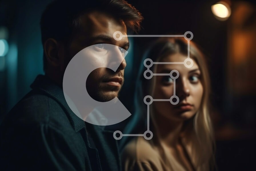 Υπάρχει δυνατότητα προσωποποίησης με δική σας φωτογραφία και προσαρμογής διαστάσεων κατόπιν παραγγελίας. Το συγεκεριμενο puzzle παρουσιαζει Αυτή η εικόνα δείχνει έναν νεαρό άνδρα και μια γυναίκα να κάθονται σε ένα δωμάτιο με χαμηλό φωτισμό. Ο άντρας κοιτάζει μακριά, χαμένος στις σκέψεις του, ενώ η γυναίκα κοιτάζει κατευθείαν την κάμερα με μια θλιμμένη έκφραση. Και οι δύο είναι ντυμένοι με σκούρα ρούχα, κάτι που πρ