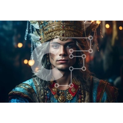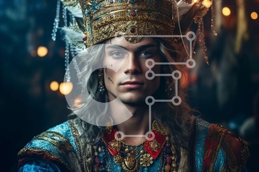 Υπάρχει δυνατότητα προσωποποίησης με δική σας φωτογραφία και προσαρμογής διαστάσεων κατόπιν παραγγελίας. Το συγεκεριμενο puzzle παρουσιαζει Αυτό είναι ένα πορτρέτο ενός άνδρα με στέμμα και περίτεχνα ρούχα. Έχει μακριά μαλλιά και γένια. Το δωμάτιο είναι αμυδρά φωτισμένο με κεριά στους τοίχους, προσθέτοντας στη μυστηριώδη ατμόσφαιρα. Ο άντρας κοιτάζει κατευθείαν την κάμερα με μια σοβαρή έκφραση στο πρόσωπό του. Ένα