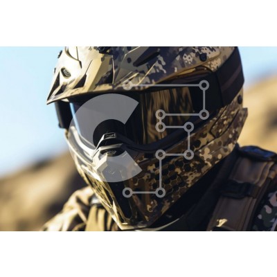 Υπάρχει δυνατότητα προσωποποίησης με δική σας φωτογραφία και προσαρμογής διαστάσεων κατόπιν παραγγελίας. Το συγεκεριμενο puzzle παρουσιαζει Αυτή η εικόνα παρουσιάζει έναν άνδρα που φορά ένα κράνος παραλλαγής τύπου στρατού και γυαλιά να στέκεται στην έρημο. Το κεφάλι του άνδρα είναι ελαφρώς γερμένο στο πλάι, υποδηλώνοντας μια αίσθηση εστίασης και προσοχής. Απεικονίζει έναν στρατιώτη βυθισμένο στο περιβάλλον του, δυ