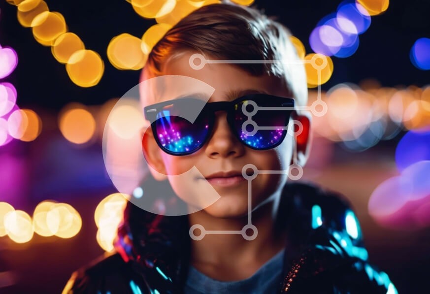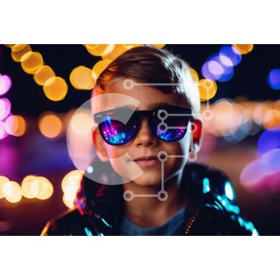 Υπάρχει δυνατότητα προσωποποίησης με δική σας φωτογραφία και προσαρμογής διαστάσεων κατόπιν παραγγελίας. Το συγεκεριμενο puzzle παρουσιαζει Αυτή η εικόνα δείχνει ένα νεαρό αγόρι ντυμένο για μια περίσταση, που φοράει γυαλιά ηλίου και στέκεται μπροστά στα πολύχρωμα φώτα τη νύχτα. Το ντύσιμό του υποδηλώνει τη μοναδική αίσθηση του στυλ και την επιθυμία του να ξεχωρίζει από το πλήθος. Ένα μοναδικό puzzle που συνδυάζει