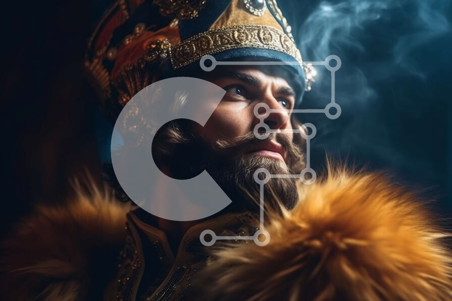 Υπάρχει δυνατότητα προσωποποίησης με δική σας φωτογραφία και προσαρμογής διαστάσεων κατόπιν παραγγελίας. Το συγεκεριμενο puzzle παρουσιαζει Αυτή η εικόνα απεικονίζει έναν άνδρα που φορά ένα γούνινο παλτό και ένα στέμμα, να καπνίζει ένα πούρο. Έχει περιποιημένα γένια και μουστάκι, προσθέτοντας στη βασιλική του εμφάνιση. Η εικόνα είναι τέλεια για έργα που απαιτούν έναν αέρα πολυπλοκότητας και πολυτέλειας. Ένα μοναδ
