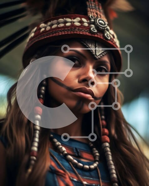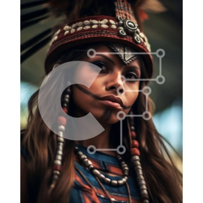 Υπάρχει δυνατότητα προσωποποίησης με δική σας φωτογραφία και προσαρμογής διαστάσεων κατόπιν παραγγελίας. Το συγεκεριμενο puzzle παρουσιαζει Αυτή η εικόνα παρουσιάζει μια ιθαγενή Αμερικανίδα με παραδοσιακή ενδυμασία και κόμμωση. Η γυναίκα στέκεται έξω μπροστά σε ένα φυσικό τοπίο και φαίνεται να κοιτάζει μακριά. Τα ρούχα της είναι διακοσμημένα με περίπλοκα μοτίβα και ζωηρά χρώματα, επιδεικνύοντας την τέχνη της ιθαγε