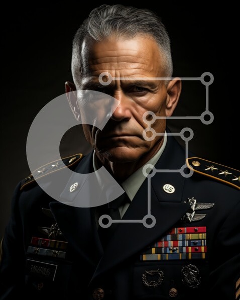 Υπάρχει δυνατότητα προσωποποίησης με δική σας φωτογραφία και προσαρμογής διαστάσεων κατόπιν παραγγελίας. Το συγεκεριμενο puzzle παρουσιαζει Αυτή η στοκ φωτογραφία απεικονίζει έναν μεσήλικα ντυμένο με στρατιωτική στολή. Έχει μια σοβαρή έκφραση στο πρόσωπό του που μεταδίδει αποφασιστικότητα και δύναμη. Η στολή είναι καλοντυμένη και προσεγμένη, με όλα τα διακριτικά, τα μετάλλια και τις κορδέλες στη σωστή θέση τους. Τ