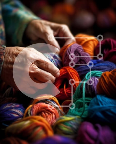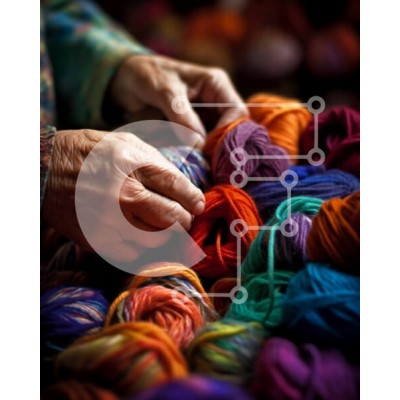 Υπάρχει δυνατότητα προσωποποίησης με δική σας φωτογραφία και προσαρμογής διαστάσεων κατόπιν παραγγελίας. Το συγεκεριμενο puzzle παρουσιαζει Αυτή είναι μια εικόνα των παλαιών και τσαλακωμένων χεριών ενός ατόμου που κρατούν μια μπάλα από πολύχρωμα νήματα. Το άτομο φαίνεται να πλέκει με το νήμα και έχει μείνει μια μικρή ποσότητα νήματος στα δάχτυλά του. Τα ζωηρά χρώματα του νήματος περιλαμβάνουν κόκκινο, πορτοκαλί, κ