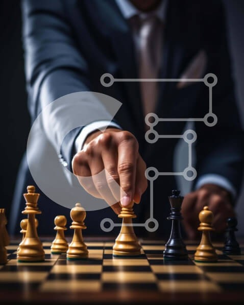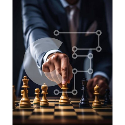 Υπάρχει δυνατότητα προσωποποίησης με δική σας φωτογραφία και προσαρμογής διαστάσεων κατόπιν παραγγελίας. Το συγεκεριμενο puzzle παρουσιαζει Αυτή η εικόνα παρουσιάζει έναν άνδρα με κομψό κοστούμι που συμμετέχει σε μια παρτίδα σκάκι. Είναι συγκεντρωμένος στο ταμπλό, δείχνοντας ένα από τα κομμάτια σαν να κάνει μια στρατηγική κίνηση. Η σκηνή αποπνέει επιτήδευση και αγωνιστικό πνεύμα. Ένα μοναδικό puzzle που συνδυάζει