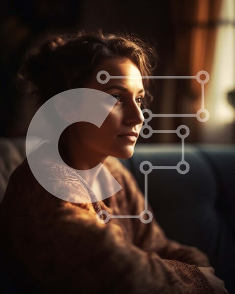 Υπάρχει δυνατότητα προσωποποίησης με δική σας φωτογραφία και προσαρμογής διαστάσεων κατόπιν παραγγελίας. Το συγεκεριμενο puzzle παρουσιαζει Αυτή η εικόνα παρουσιάζει μια γυναίκα που φορά ένα καφέ πουλόβερ που κάθεται σε έναν καναπέ σε ένα δωμάτιο με χαμηλό φωτισμό. Φαίνεται ειρηνική καθώς κάθεται με το κεφάλι της στο πλάι, κοιτάζοντας μακριά. Η συνολική διάθεση της φωτογραφίας υποδηλώνει περισυλλογή και ησυχία. Έ
