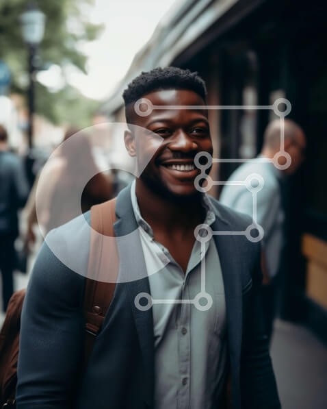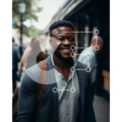 Υπάρχει δυνατότητα προσωποποίησης με δική σας φωτογραφία και προσαρμογής διαστάσεων κατόπιν παραγγελίας. Το συγεκεριμενο puzzle παρουσιαζει Αυτή η εικόνα δείχνει έναν χαμογελαστό Αφροαμερικανό άνδρα να φορά ένα κοστούμι και να κρατά ένα σακίδιο καθώς περπατά σε έναν πολυσύχναστο δρόμο της πόλης. Ο άνδρας εμφανίζεται σίγουρος και χαρούμενος καθώς περιηγείται στο αστικό περιβάλλον γύρω του. Η εικόνα είναι ζωντανή κα