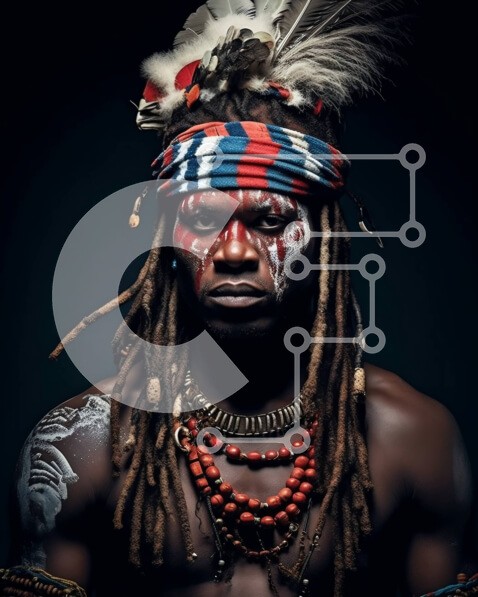 Υπάρχει δυνατότητα προσωποποίησης με δική σας φωτογραφία και προσαρμογής διαστάσεων κατόπιν παραγγελίας. Το συγεκεριμενο puzzle παρουσιαζει Αυτή η εικόνα είναι ένα πορτρέτο ενός Αφρικανού άνδρα που φοράει παραδοσιακή ενδυμασία, μπογιά προσώπου και φτερωτό κόμμωση με κολιέ με χάντρες. Έχει μια σοβαρή έκφραση και κοιτάζει κατευθείαν την κάμερα. Ένα μοναδικό puzzle που συνδυάζει ποιότητα, αισθητική και εμπειρία. Υλ