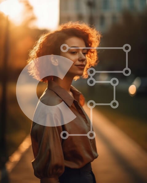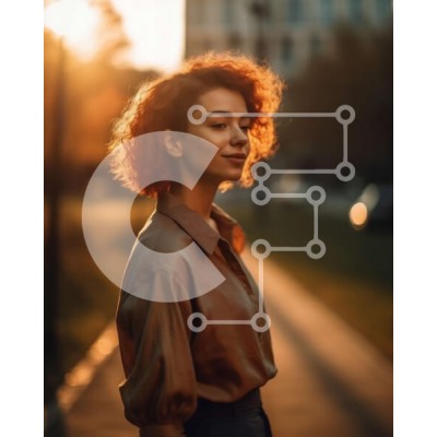 Υπάρχει δυνατότητα προσωποποίησης με δική σας φωτογραφία και προσαρμογής διαστάσεων κατόπιν παραγγελίας. Το συγεκεριμενο puzzle παρουσιαζει Αυτή η εικόνα παρουσιάζει μια νεαρή γυναίκα με κόκκινα μαλλιά να στέκεται στη μέση ενός δρόμου της πόλης κατά τη διάρκεια του ηλιοβασιλέματος. Η γυναίκα φορά ένα καφέ πουκάμισο και μαύρο παντελόνι. Τα κτίρια στο βάθος είναι ψηλά και μοντέρνα, με γυάλινες προσόψεις. Ο πορτοκαλί