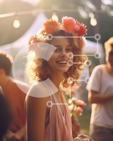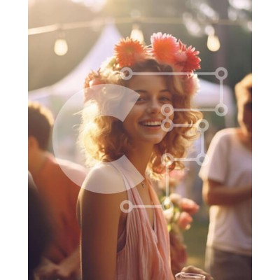 Υπάρχει δυνατότητα προσωποποίησης με δική σας φωτογραφία και προσαρμογής διαστάσεων κατόπιν παραγγελίας. Το συγεκεριμενο puzzle παρουσιαζει Η εικόνα απεικονίζει μια νεαρή γυναίκα να χαμογελά καθώς αλληλεπιδρά με άλλους ανθρώπους σε μια υπαίθρια εκδήλωση. Το λουλουδένιο στέμμα της φαίνεται στο κεφάλι της, υποδηλώνοντας ότι είναι μέρος της γιορτής. Στο βάθος φαίνονται άλλοι άνθρωποι, είτε στέκονται είτε κάθονται κον