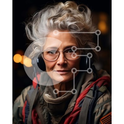Υπάρχει δυνατότητα προσωποποίησης με δική σας φωτογραφία και προσαρμογής διαστάσεων κατόπιν παραγγελίας. Το συγεκεριμενο puzzle παρουσιαζει Αυτή η εικόνα είναι ένα πορτρέτο μιας ηλικιωμένης γυναίκας που φορά ένα στρατιωτικό σακάκι και ακουστικά. Στέκεται με σιγουριά μπροστά σε ένα σκοτεινό φόντο, μεταφέροντας μια αίσθηση δύναμης και ανθεκτικότητας. Η γυναίκα φαίνεται να έχει ζήσει μια γεμάτη ζωή και η στολή της υπ