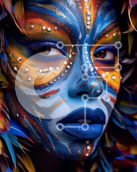 Υπάρχει δυνατότητα προσωποποίησης με δική σας φωτογραφία και προσαρμογής διαστάσεων κατόπιν παραγγελίας. Το συγεκεριμενο puzzle παρουσιαζει Αυτή η εικόνα απεικονίζει μια γυναίκα με ένα εντυπωσιακό και πολύχρωμο σχέδιο ζωγραφικής προσώπου. Φτερά υπάρχουν και στα μαλλιά της, προσθέτοντας στη συνολική αισθητική της εικόνας. Ένα μοναδικό puzzle που συνδυάζει ποιότητα, αισθητική και εμπειρία. Υλικό: Κατασκευασμένο απ