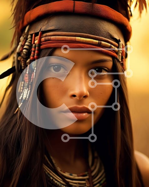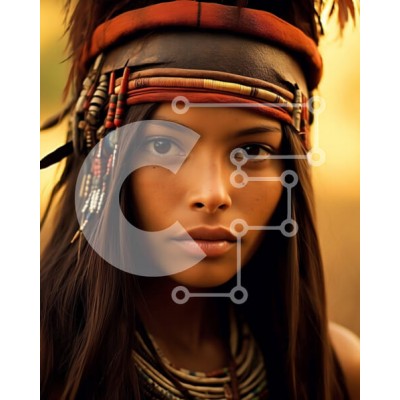 Υπάρχει δυνατότητα προσωποποίησης με δική σας φωτογραφία και προσαρμογής διαστάσεων κατόπιν παραγγελίας. Το συγεκεριμενο puzzle παρουσιαζει Αυτή η εικόνα απεικονίζει μια όμορφη γυναίκα που φορά μια ιθαγενή αμερικανική κόμμωση και παραδοσιακά κοσμήματα. Η κόμμωση είναι διακοσμημένη με φτερά και περίπλοκες χάντρες, και τα κοσμήματα διαθέτουν περιδέραια και σκουλαρίκια με χάντρες. Η έκφραση της γυναίκας είναι γαλήνια
