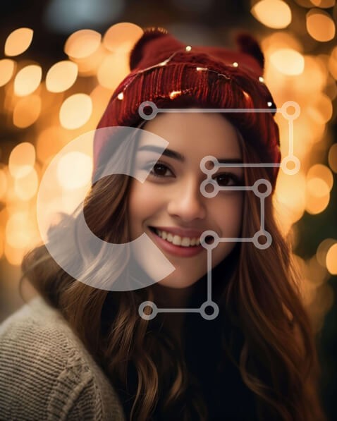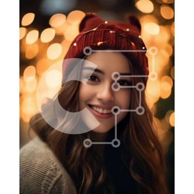 Υπάρχει δυνατότητα προσωποποίησης με δική σας φωτογραφία και προσαρμογής διαστάσεων κατόπιν παραγγελίας. Το συγεκεριμενο puzzle παρουσιαζει Αυτή η εικόνα παρουσιάζει μια νεαρή γυναίκα με μακριά, σγουρά μαλλιά και ένα αξιολάτρευτο κόκκινο φασόλι. Χαμογελά στον φωτογραφικό φακό ενώ στέκεται μπροστά σε πολύχρωμα φώτα, υπονοώντας ότι απολαμβάνει τις γιορτές ή γιορτάζει τα γενέθλιά της. Το ντύσιμό της αντανακλά τη γιορ
