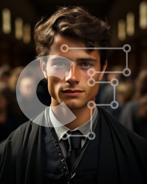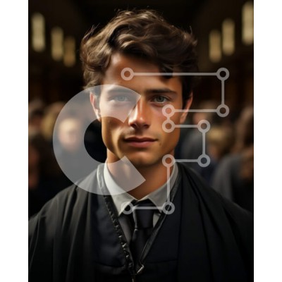 Υπάρχει δυνατότητα προσωποποίησης με δική σας φωτογραφία και προσαρμογής διαστάσεων κατόπιν παραγγελίας. Το συγεκεριμενο puzzle παρουσιαζει Αυτή η εικόνα απεικονίζει έναν νεαρό άνδρα με μαύρη ρόμπα και γραβάτα να στέκεται σε ένα γεμάτο δωμάτιο. Κοιτάζει κατευθείαν την κάμερα με μια σοβαρή έκφραση στο πρόσωπό του. Το φόντο είναι θολό, παρέχοντας την τέλεια εστίαση στον άντρα. Είναι μια εξαιρετική εικόνα για χρήση σ