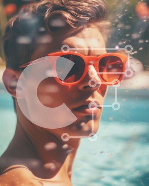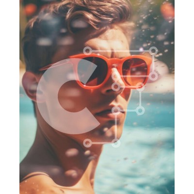 Υπάρχει δυνατότητα προσωποποίησης με δική σας φωτογραφία και προσαρμογής διαστάσεων κατόπιν παραγγελίας. Το συγεκεριμενο puzzle παρουσιαζει Η εικόνα δείχνει έναν νεαρό άνδρα που φοράει κόκκινα γυαλιά ηλίου και στέκεται δίπλα στην πισίνα. Κοιτάζει κατευθείαν την κάμερα, η οποία φαίνεται μέσα από την αντανάκλαση της πισίνας στο βάθος. Υπάρχουν επίσης μικρές πιτσιλιές νερού γύρω από το πρόσωπο του άνδρα, υποδηλώνοντα